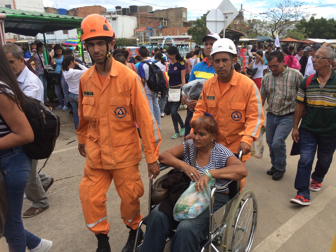 Personal de Defensa Civil Colombiana ayudando a venezolana comprando productos básicos en “La Parada” Colombia. 17 de Julio de 2016